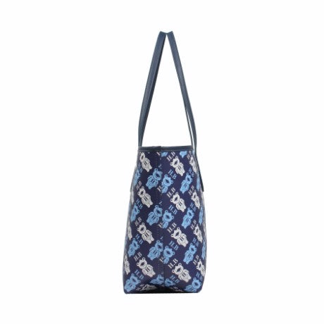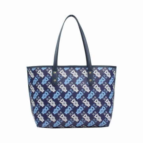 Effortless style meets everyday utility in the Henney Bear Bari Shoulder Bag with Pouch. Designed with a bold all-over bear logo print in rich navy tones, this spacious tote is perfect for daily commutes, shopping trips, or casual outings. It comes with a matching zippered pouch featuring a detachable chain strap—ideal for carrying essentials or using as a clutch on its own.