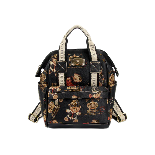 Whether you're heading to work, school, or a casual day out, this backpack adds a touch of class to any outfit. The adorable Henney Bear motif adds a playful twist to its sleek design, making it a unique addition to your wardrobe. With its durable construction and comfortable wearability, this backpack is not just a fashion statement—it's a reliable partner for your busy lifestyle.