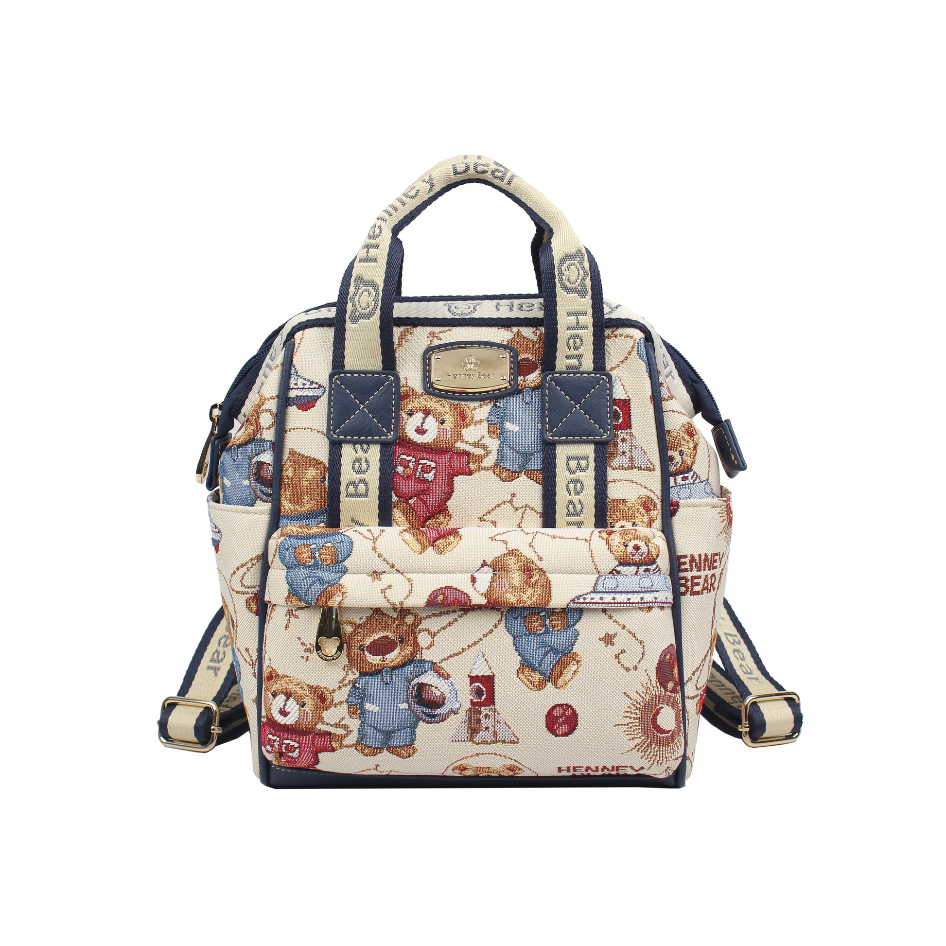 Whether you're heading to work, school, or a casual day out, this backpack adds a touch of class to any outfit. The adorable Henney Bear motif adds a playful twist to its sleek design, making it a unique addition to your wardrobe. With its durable construction and comfortable wearability, this backpack is not just a fashion statement—it's a reliable partner for your busy lifestyle.