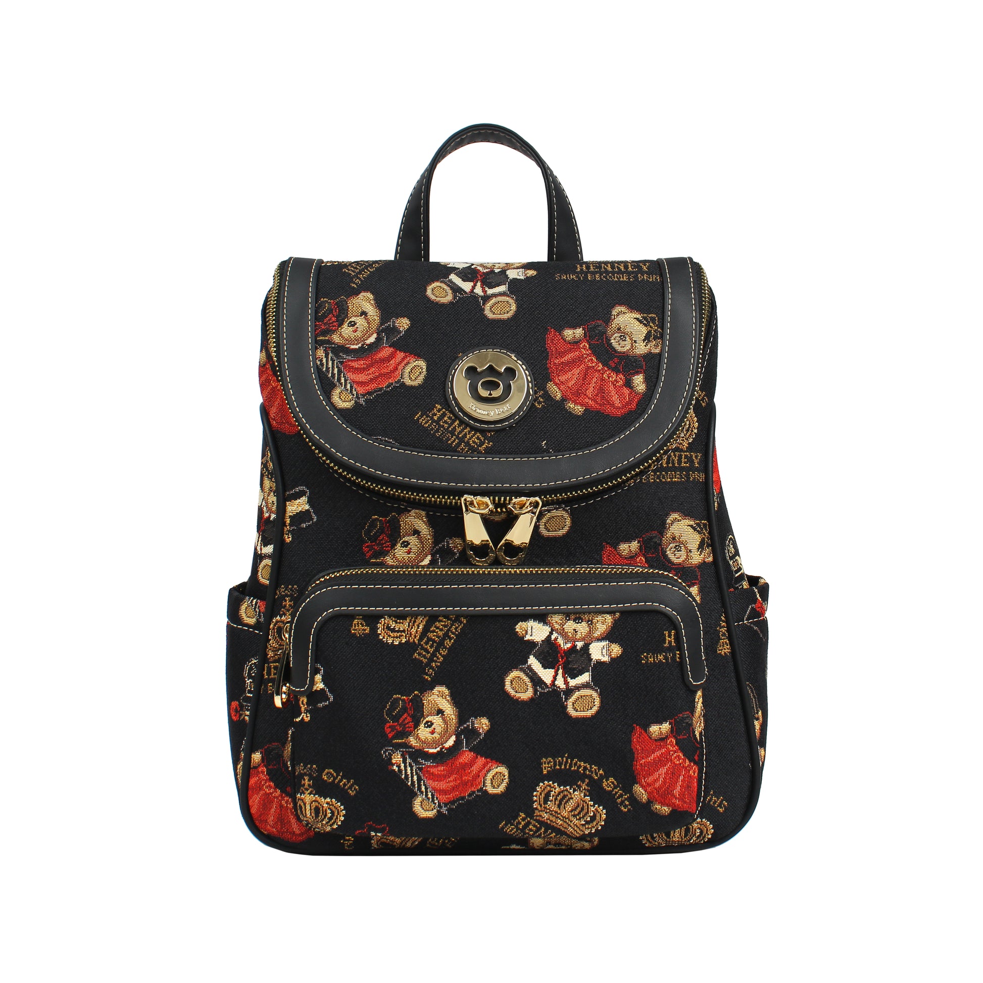 - Functional Prowess: Despite its diminutive size, the Henney Bear Seraphina Mini Backpack is surprisingly spacious. Thoughtful compartmentalization ensures that your essentials are neatly organized, making it a practical companion for your on-the-go lifestyle.